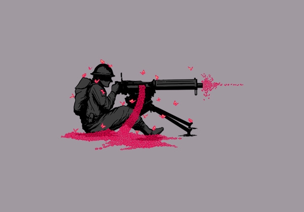 Make love not war. Put flowers in your hair and have a drum circle. Peace, love and music. Go back to Woodstock you bloody hippies! I’ve got a fully-automatic “flower-power” machine gun and I’m not afraid to use it! With over 150 rounds a second, I’ll pump you full of […]