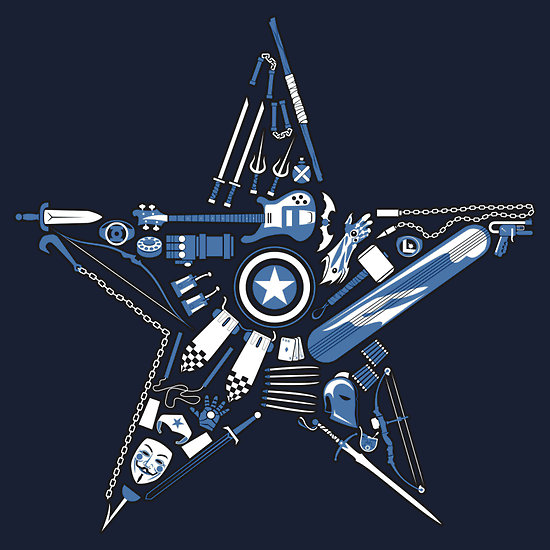As the world around crumbles, a solitary figure stands tall – protecting the innocent, fighting for the downtrodden and repelling the insidious advances of evil masterminds. Proclaim your allegiance to the side of justice and truth with this design composed of 33 amazing comic book hero weapons! Available in black […]
