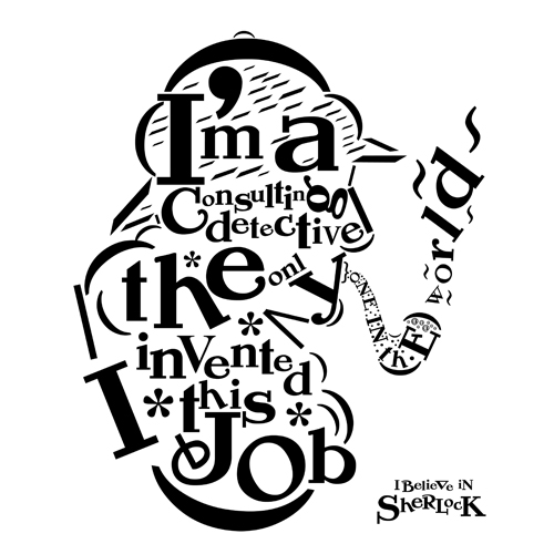 I’m a Consulting Detective – the only one in the world. I invented this job. — Sherlock Holmes Typographic design in the shape Sherlock Holmes. Inspired by the world’s only consulting detective, Sherlock Holmes.