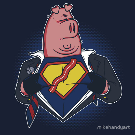 After years of retirement, the Pork Knight returns, to keep the streets of Goth-Ham safe. Bacon and Batman in one tasty mash-up.