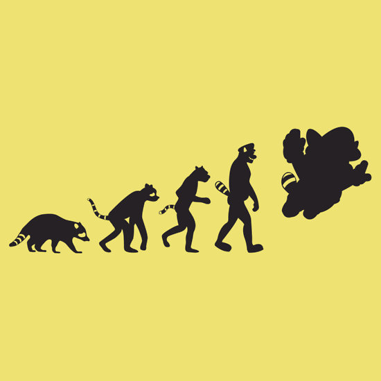 It is a commonly accepted scientific fact that the Tanooki Mario has evolved from the Japanese Racoon Dog, Tanuki. Of course there are others who believe that fat, flying plumbers who can turn to stone were created by a higher power…Nintendo. Super Mario Bros meets evolution in this mash-up.